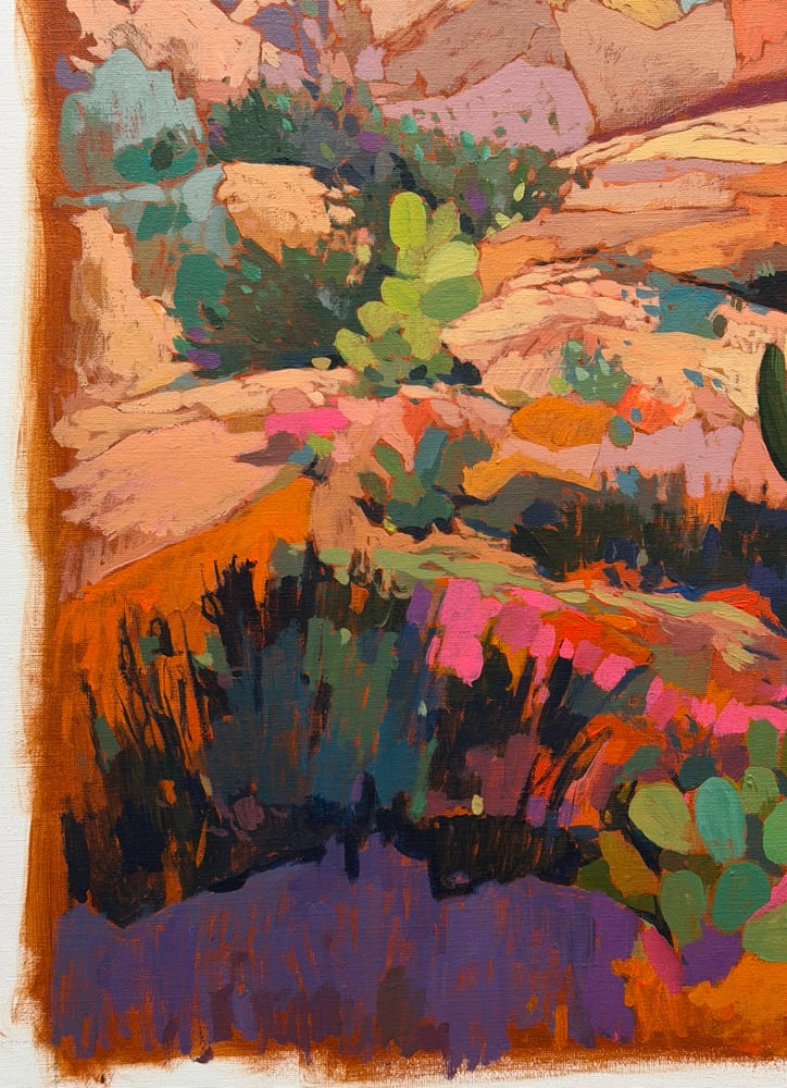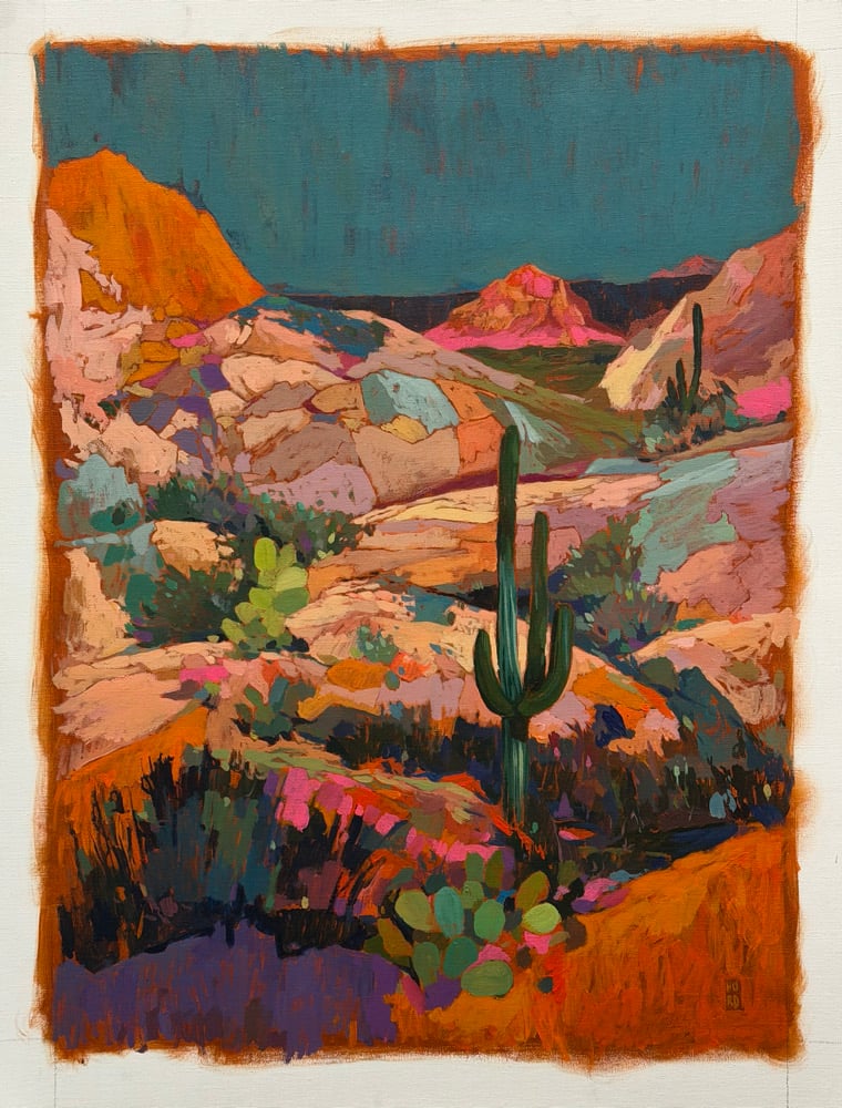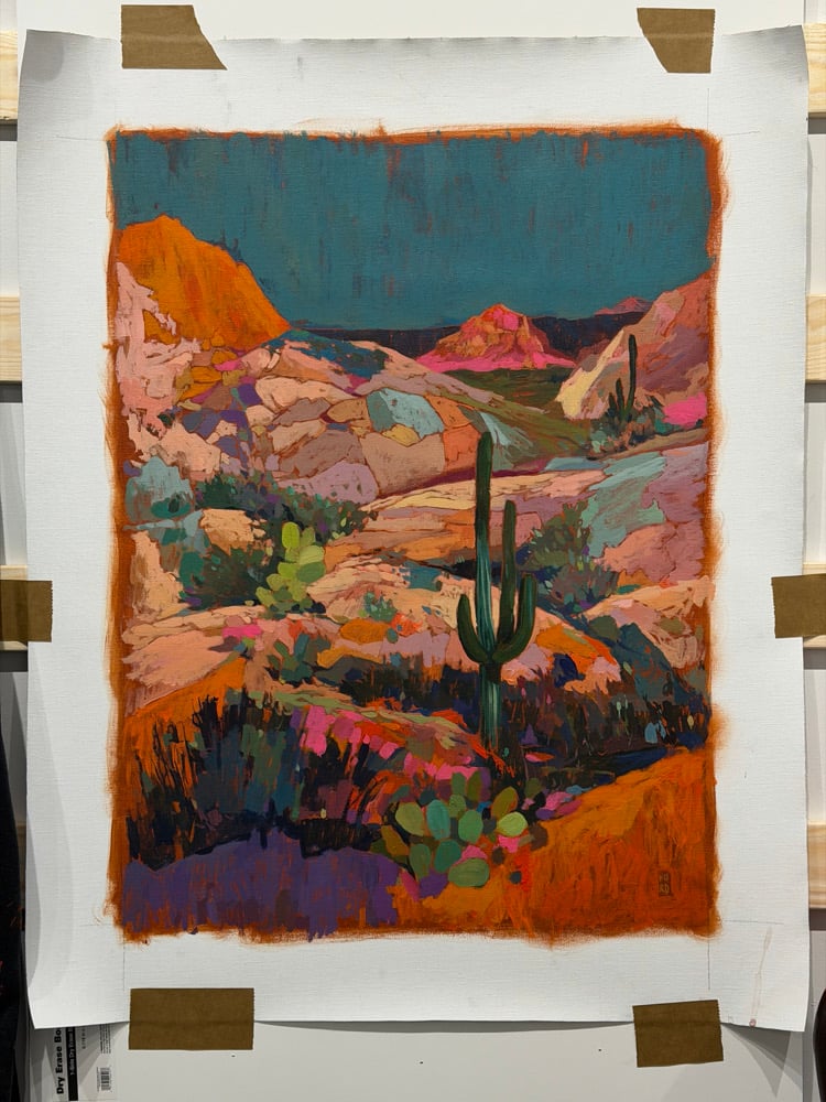 18x24" acrylic painting on unstretched canvas. There is an addition 3” of canvas all around for stretching or framing however you’d like.